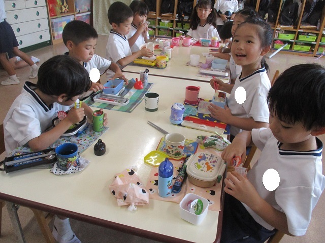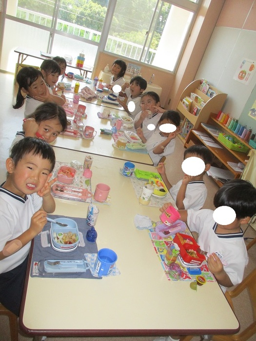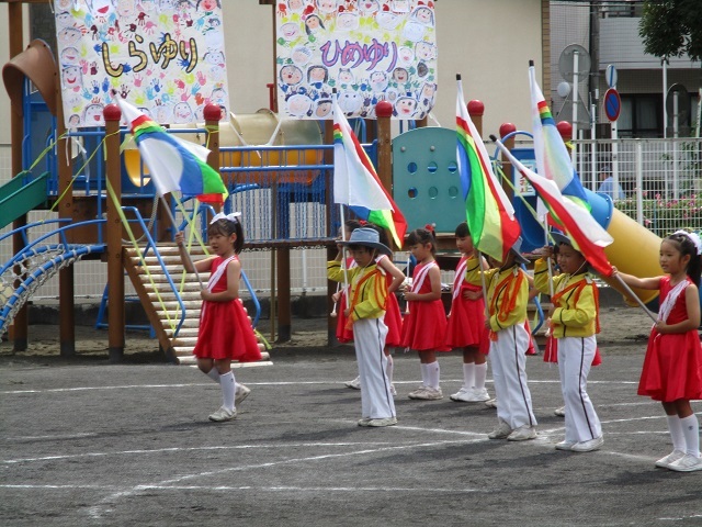 運動会まであと少し。暑さに負けずにマーチングの練習も頑張っています。年長組はリレーがあるので、今日は作戦会議もしました。どういう順番にしたらいいのか?自分たちで真剣に話し合っていました。そんなひとりひとりの頑張る気持ちが当日につながっていってくれたら嬉しいです。 | ||