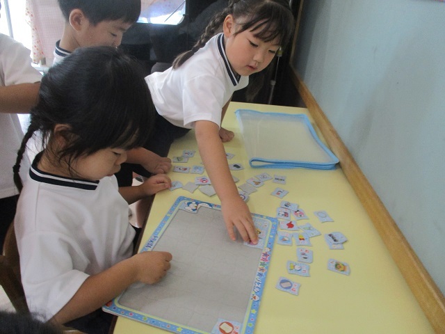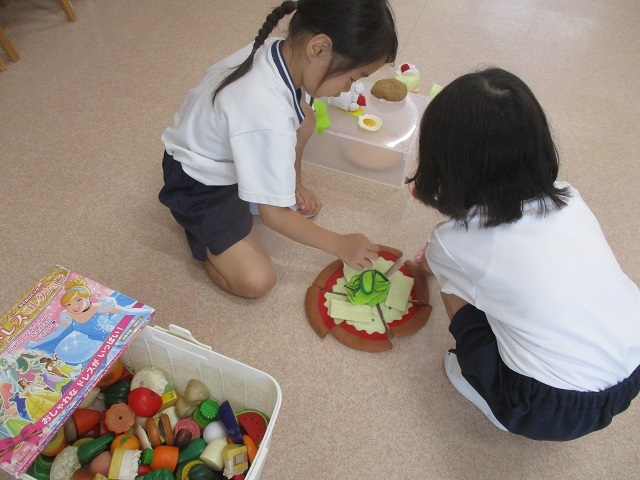 朝の預かり保育でパズルやおままごとをしました。 | ||