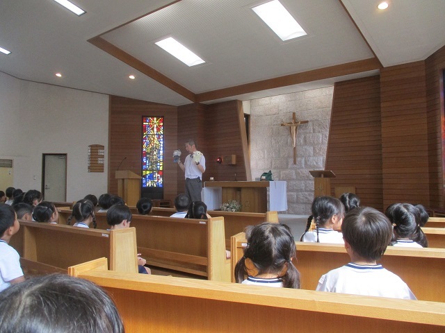 2025/9/1 今日から2学期が始まりました。 まだまだ、暑い日が続きますが子どもたちは元気いっぱいです。 教会で園長先生のお話を聞き、2学期もお友だちと仲良く楽しく過ごせるように お祈りをしました。 | ||