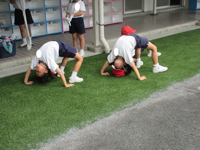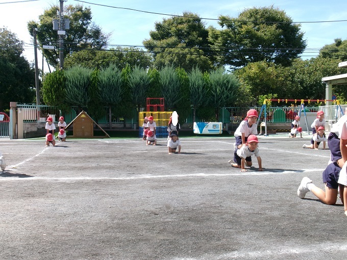 2025/9/18 連日の猛暑が少しやわらぎ、園庭で元気に遊びました!運動会の練習の合間にブリッジレースやパカパカ競争を楽しむ姿がありました♪ | ||