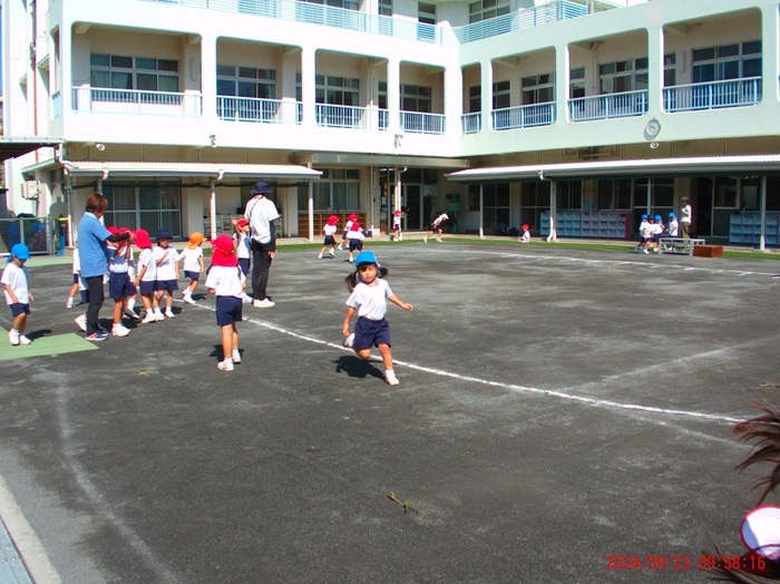 2025/9/8 暑い一日でしたが、朝のかけっこや体操指導で元気に体を動かしました! かけっこでは走る意欲が増してきて、みんなどんどん速くなってきました♪ | ||