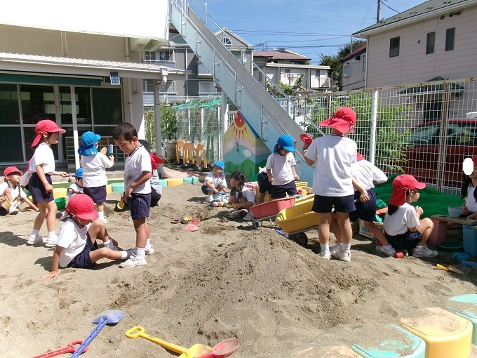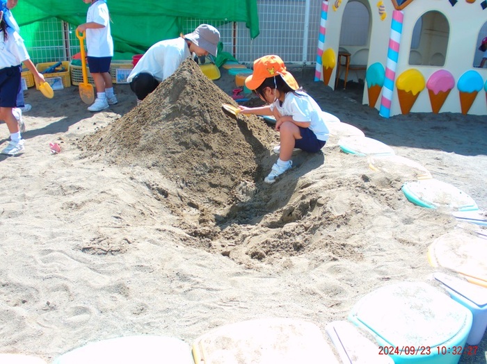 まだまだ日差しは強いですが、だんだんと過ごしやすい季節になりました。 今日は久しぶりにお外でたくさん遊ぶことができました! | ||