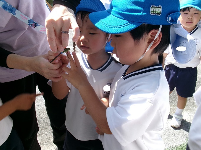 2025/9/25 運動会まであと2日!! 子どもたちは元気いっぱいに今日も練習を頑張っていました♪ 年中組は、運動会に向けて大切なパラバルーンをみんなで拭いて、頑張る気持ちを高めました♪ また、外遊びをしていたら、ギンヤンマ発見!! 初めて見るギンヤンマに大興奮な子どもたちでした♡ | ||