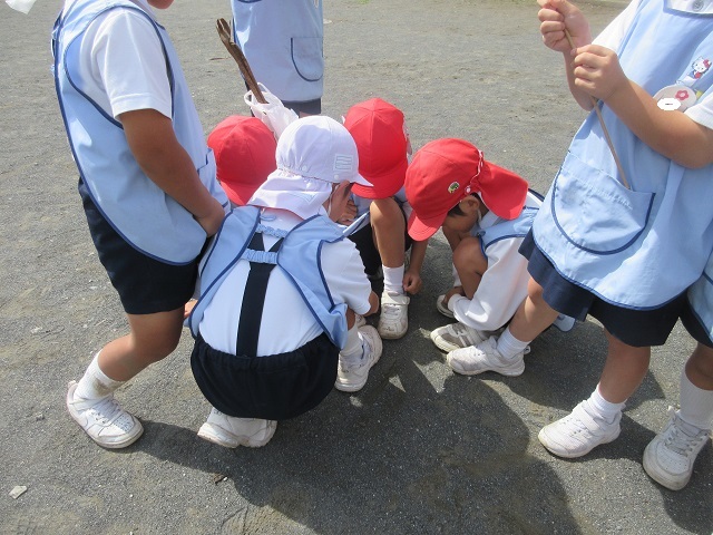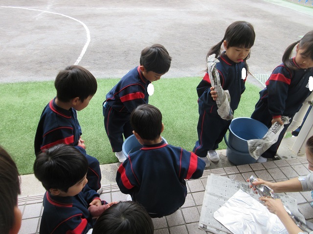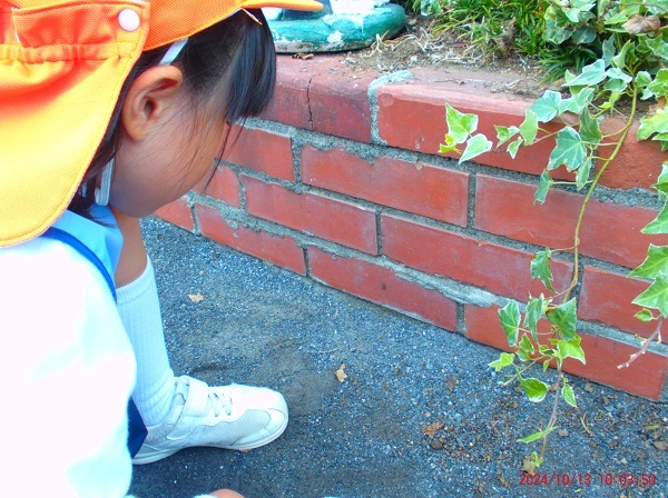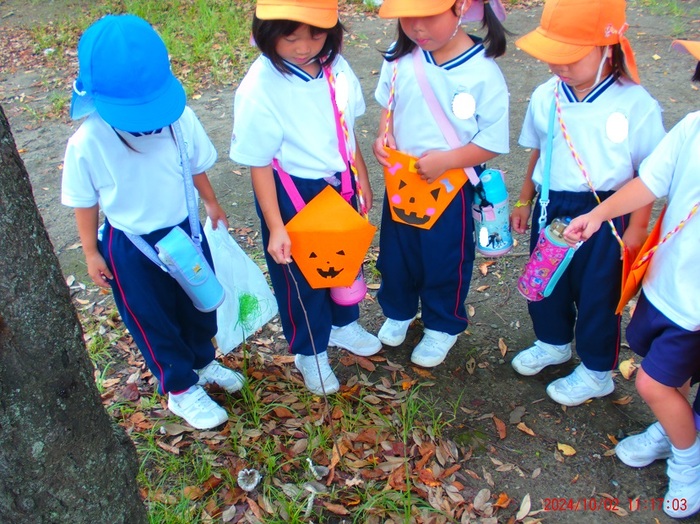 2025/10/7 秋晴れの続く中、たっぷり戸外遊びの時間を過ごしました。 年少さんは年長、年中さんを真似て朝顔で色水を作り絵を描いてみたり、虫探しをしたり遊びを見つけて楽しむのが上手になってきました。 | ||