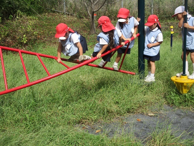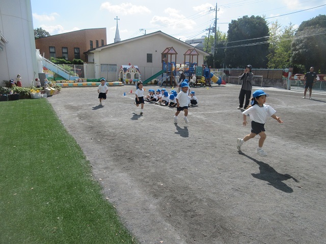 2025/10/14 10月も半ばになり、空気がすっかり秋らしくなってきました🍁 日中は、心地よい風が吹き過ごしやすい季節ですね。 園庭では、ドッジボールや鬼ごっこ、虫探し、遊具遊びで楽しむ姿が見られました。 年少組は、運動会の年長組に憧れてリレーに挑戦しました。 おにいさん・おねえさんのように走りたい!という思いが伝わってきました。 | ||