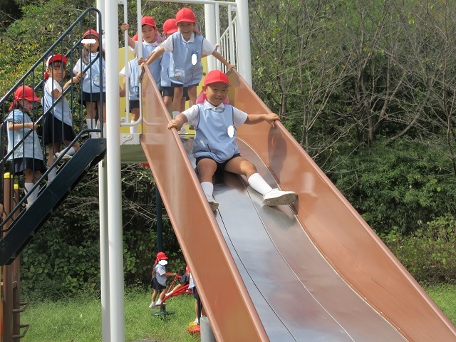 2025/10/2 良いお天気の中、ゆりぐみみんなで鍛冶ヶ谷西公園にお散歩にいきました。幼稚園にはない固定遊具で元気に遊びました。 | ||
