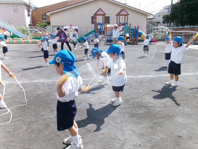 2025/10/6 今日は、いいお天気だったのでお外でたくさん遊びました! かけっこでは、みんな最後まで諦めないでゴールに向かって走っていました! 年少組は、初めて縄跳びに挑戦しました♪ 「むずかしいな~」と言いながらも初めての縄跳びに楽しそうな姿が見られました♪ また、その後は拾ってきたどんぐりを使って、モンスター作りをしました! | ||