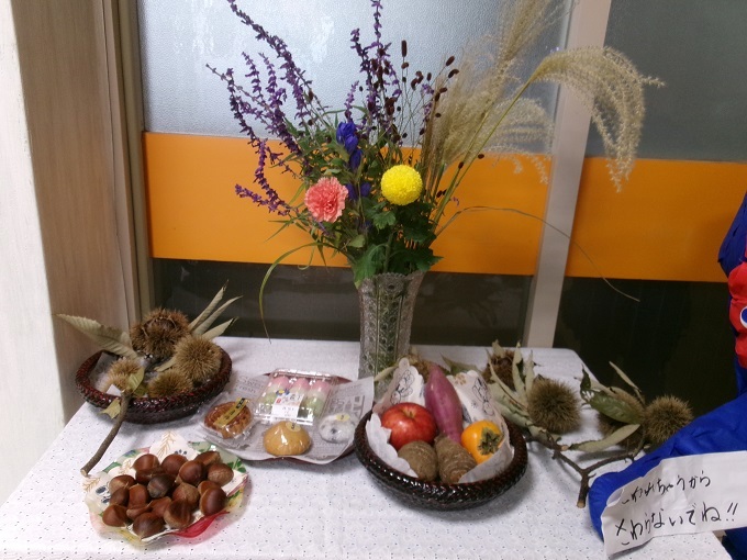 今日は十五夜ということで、幼稚園でもおだんごやススキなどを飾りました! | ||