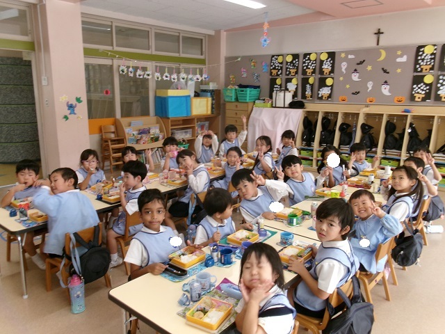 2025/10/1 久しぶりに雨の一日でした☔ 年長組は、学年でカードめくりやスキップじゃんけんゲームをして楽しみました。 チーム対抗戦だったので白熱しました!! みんなで一緒にお弁当を食べて楽しい一日となりました☺ | ||