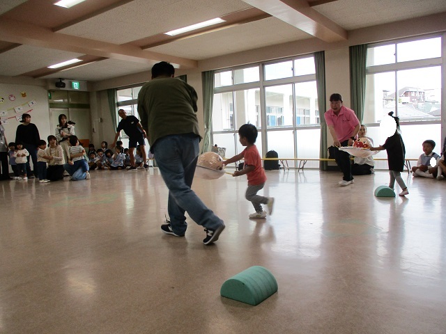 2025/10/9 未就園児教室エンジェルクラスと地域の未就園児のお友だち対象のミニミニ運動会を行いました! アンパンマンをテーマに、サンサン体操をしたり、親子でアンパンマンの顔運びや玉入れを行いました。 幼稚園のお兄さんお姉さんが応援にきてくれて頑張りました! かけっこではお兄さんお姉さんにメダルをかけてもらったり、年少さんが運動会のダンスを披露してくれて、楽しいひと時を過ごしました! | ||