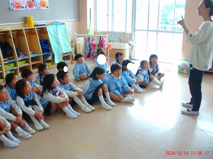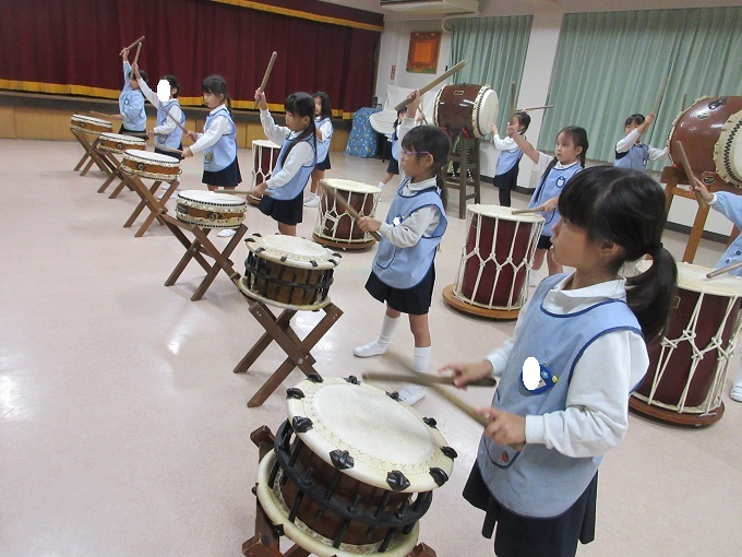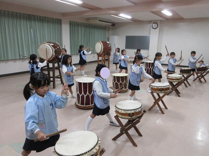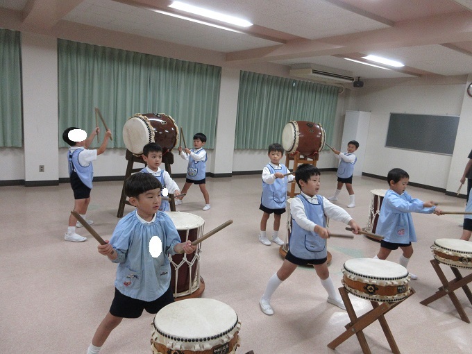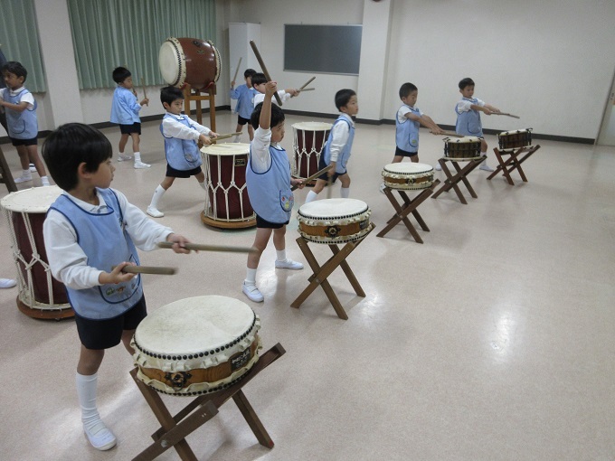 2025/10/16 年長組は、太鼓をやりました! ばちの持ち方やたたき方などの基礎の練習をしました! そのあとは、音楽に合わせて太鼓をたたき、最後まで集中して楽しく行うことができました♪ | ||