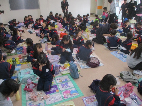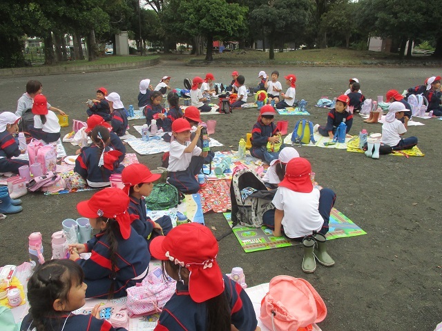 畑近くの舞岡公園でお弁当を食べる予定でしたが雨が降ってきたので 幼稚園に戻り、みんなでお弁当を食べました。 おいしいお弁当とおやつを食べてみんなとても満足そうでした✨ | ||