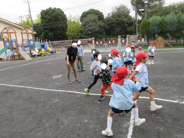 2025/10/21 今日予定していた3つの保育園のお友だちとの交流会は、お天気が不安定だったため中止になりましたが、園の近くにあるベネッセ保育園のお友だちをお誘いして交流する機会をもつことができました。お互いに運動会で頑張ったことを披露しました。鍛冶ヶ谷の子どもたちが先にマーチングを見せると、「ほんものの楽器をしていてかっこよかった」という感想を言ってもらい、うれしそうな表情が印象的でした♬ ベネッセ保育園のお友だちは、自分たちで染めたはっぴを着てソーラン節を披露してくれました。腰を低くして、「ソーラン、ソーラン」と勇ましく踊る姿を見て「かっこよかった~」と素直な感想を言っていました。 最後にリレーもして、最後は笑顔で「またきてね~」とお見送りをして素敵な時間が終わりました。 | ||