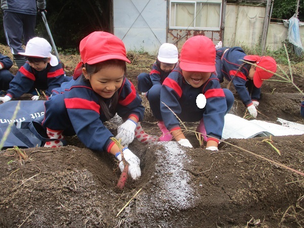 2025/10/24 みんな楽しみにしていたお芋ほりでした🍠 お天気が心配でしたが無事、お芋を掘ることができました!! 細いお芋、長いお芋、太いお芋・・・様々でしたがみんな一生懸命掘っていました。 お芋が掘れるととても嬉しそうな笑顔で見せてくれました☺ | ||