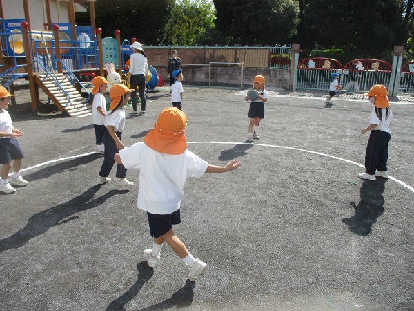 2025/10/27 久しぶりにいいお天気だったので園庭でのびのびと体を動かし遊ぶことができました! 年長組がいつもやっているドッジボールに興味津々の年中組。 年中組はボール当てゲームをやってみました。ボールから必死に逃げていました! そんな姿を見て、年長組のおにいさんたちが「おしえてあげるよ!」と一緒に遊んでくれました✨ | ||