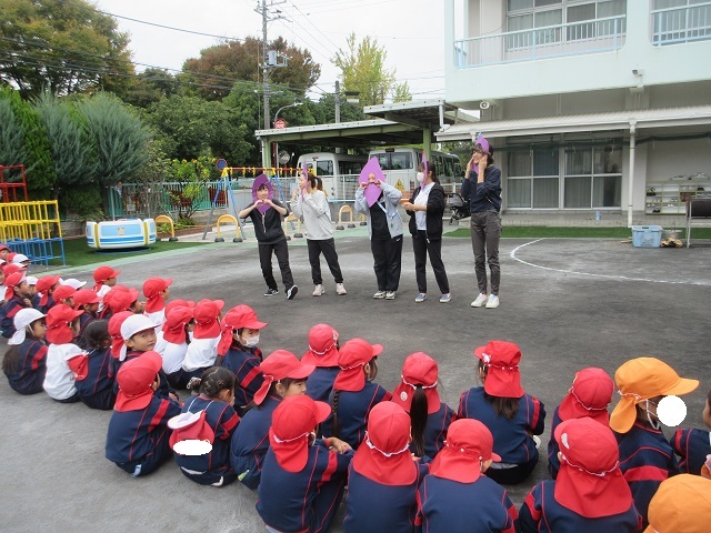 2025/10/28 今日は、素敵なお天気だったのでお外で体をたくさん動かし楽しく遊ぶことができました♪ また、年中組と年少組の代表のお友達は、小菅ヶ谷地域ケアプラザに遊びに行きました! 秋の歌をプレゼントしたり、一緒に手遊びをしたりして楽しくかかわることができました♪ 最後には、素敵なプレゼントをもらうことができて、大満足な一日を過ごすことができました♪ | ||
