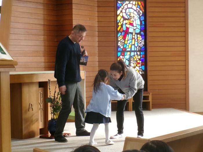 2026/2/4 今日は教会で、園長先生より神様のお話をしていただきました。 年長さんに前に出てお手本になってもらい、元気に挨拶をすることの大切さや、「強い人は優しい」という お話を聞きました。真剣な表情で耳を傾ける子どもたちでした。 その後は、元気いっぱいお外で遊びました! 幼稚園の近くで工事をしているショベルカーに興味津々な子どもたち♪ 「がんばってくださーい!」と工事の方に声を掛ける微笑ましい姿もみられました! | ||