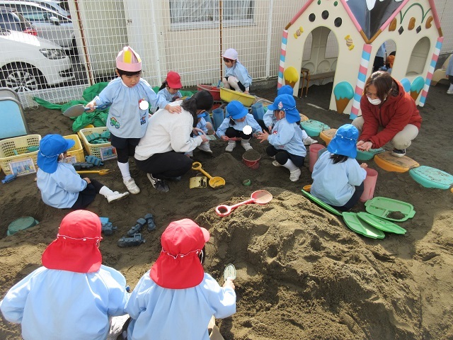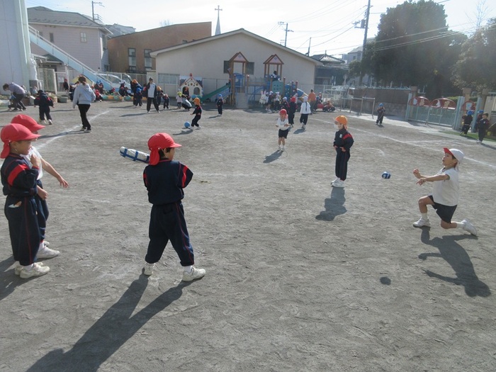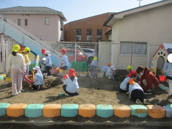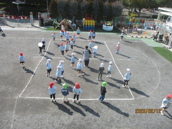 2026/2/6 今日は、風も無く日差しの下では春を感じるほどのポカポカ陽気でした。 子どもたちは園庭で、思い思いにあそびを楽しんでいました。 野球や鬼ごっこ、おままごとに泥団子作り。学年の枠を超え一緒に遊んでいる姿が見られます。 年少さんは“お友だちと一緒に楽しく遊ぶにはどうしたらよいのか?” 日々の集団生活の中で身についてきました。 午前保育の短い時間でしたが、遊びを見つけて楽しむのが上手になってきました。 | ||