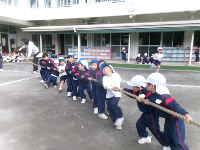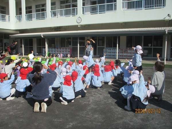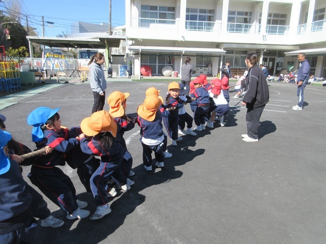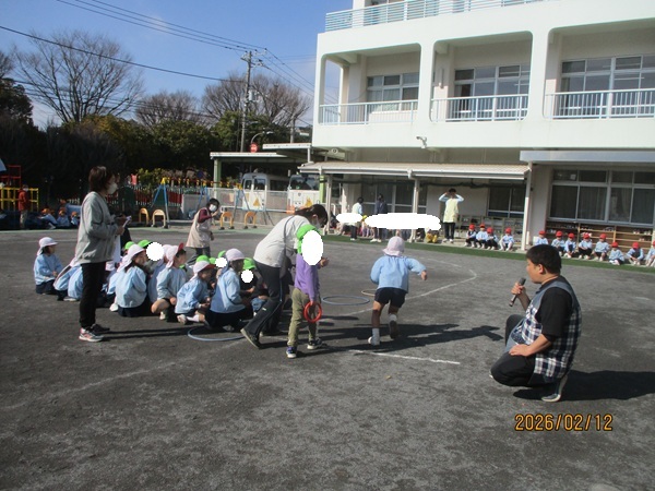 2026/2/16 今日も元気いっぱいな子どもたち!! かけっこでは、ゴールを目指して一生懸命に走る姿がたくさん見られました♪ 年少組、年中組は体操指導を行いました。 今日はクラス対抗で綱引きやリレーに挑戦!! 「負けないぞ~!」と気合い十分で、最後まであきらめずに頑張る姿が見られました! 見事勝ったクラスは、優勝トロフィーを受け取り大喜び✨ 体をたくさん動かし楽しい時間を過ごすことができました♪ | ||