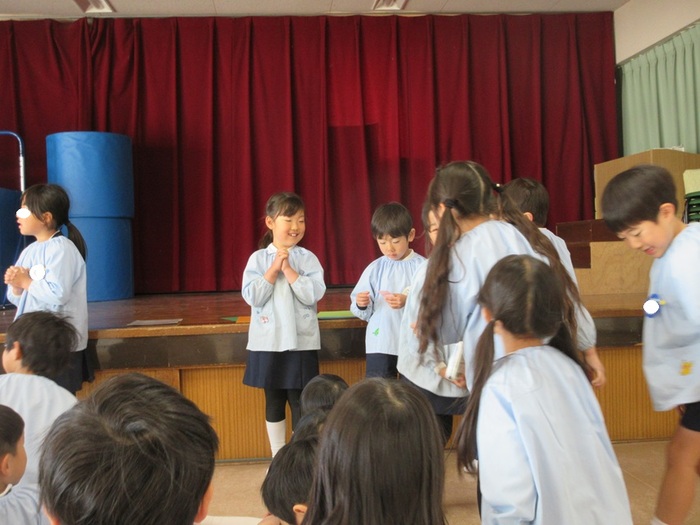 2026/2/19 今年度最後の誕生会がありました。 教会で園長先生から祝福をしていただき、みんなの前でお誕生日を発表したりおうちの方にもインタビューをしてお祝いしました✨ 今日のお楽しみは『変身トンネル』大型絵本を見てから、先生たちの変身トンネルを楽しみました❤ また、言葉の変身で遊んでみましょう! | ||