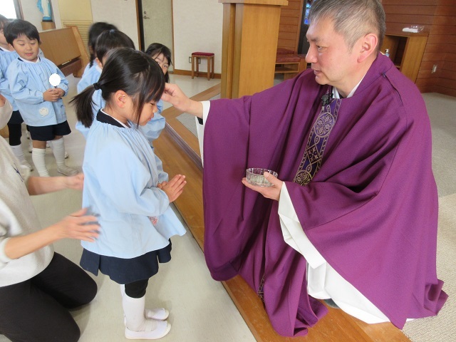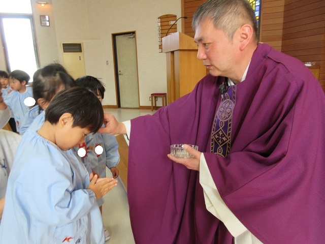 そして、今日は灰の水曜日です。 神様に守って頂ける印をつけていただきました。 | ||