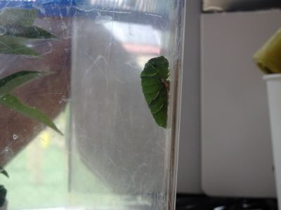 金柑の木には、たくさんの青虫も。蝶になる日を心待ちにしながら、こちらは教室で飼育をしています。年長さんの教室では、既に4匹が蛹になっているそうです。 | ||