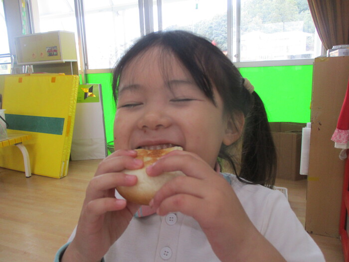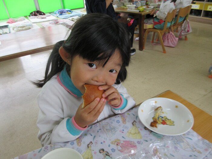 買ったパンは給食の時みんなで食べました。 ふわふわでおいしかったね! | ||