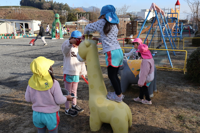 「まだかえりたくない~」 「また”みんなで”きたいな~」 大好きな保育園のお友だちとたくさん遊び、とても楽しかったようです。 | ||