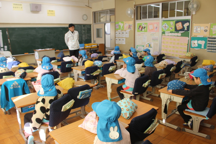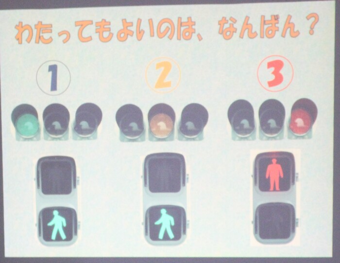 10月1日(水) 交通安全教室 警察署の方に来ていただき、交通ルールを教えていただきました。 みんな真剣にお話を聞きいていましたよ。 | ||