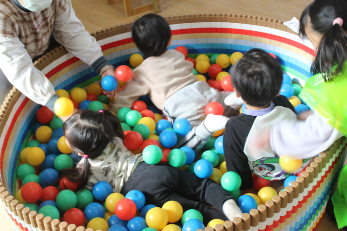 いつもはクラスごとに入りますが、今日は皆で楽しく遊びました。 | ||