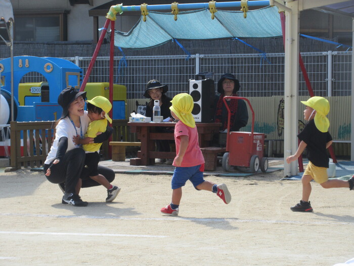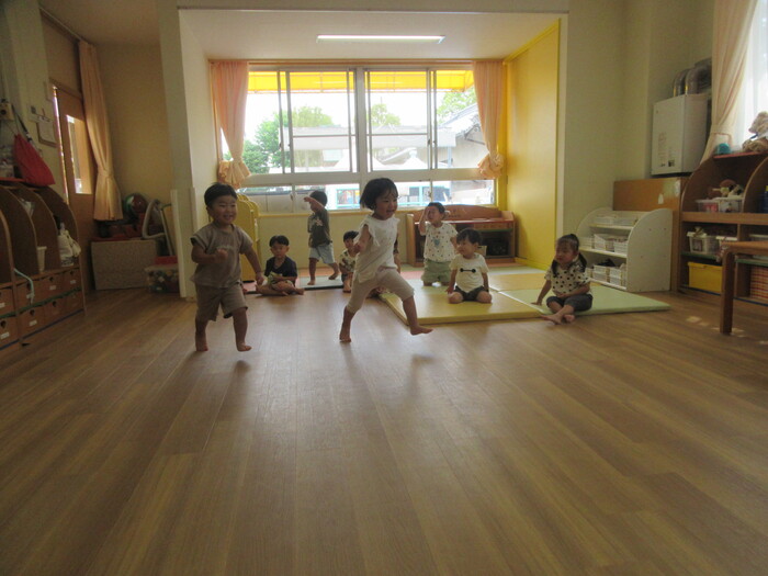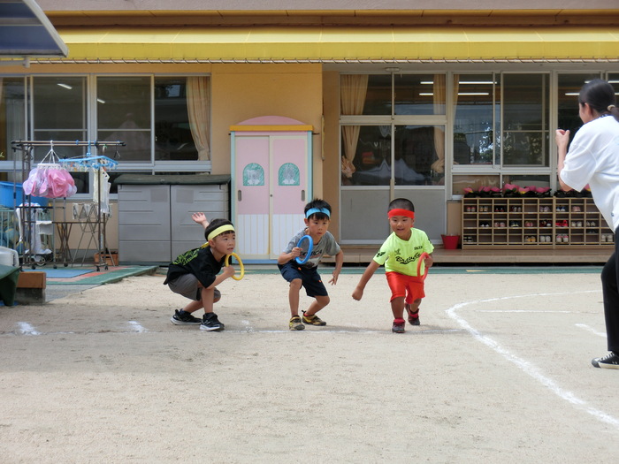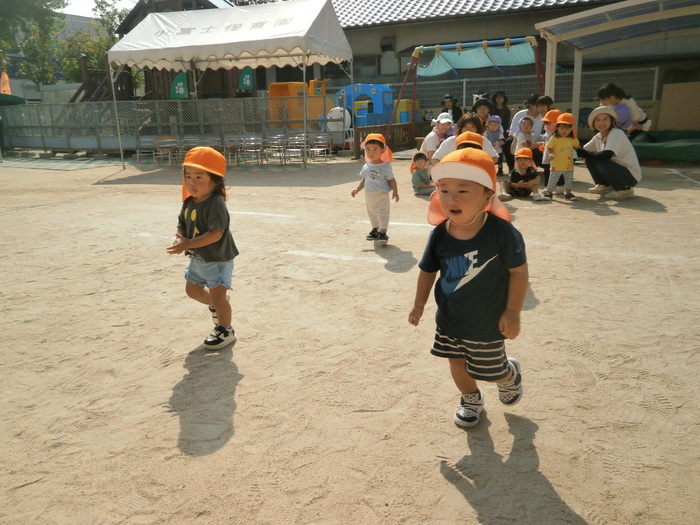 かけっこはお部屋でも特訓(笑) みんな笑顔でゴールできました。 | ||