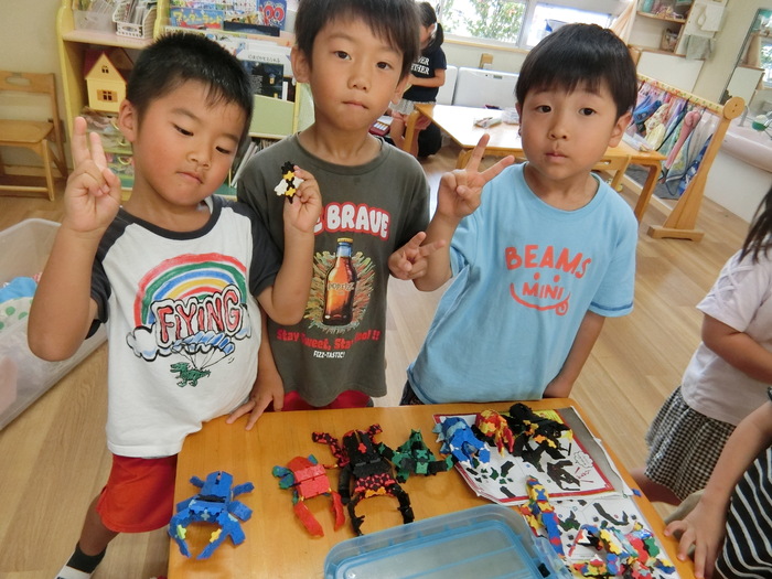 おそろいの服で、お気に入りの恐竜とともに。。。😉 『フルーツバスケット』 果物がおいしい季節になりましたねー😁 それぞれ好きなフルーツを選んでゲームを楽しみました☆ | ||