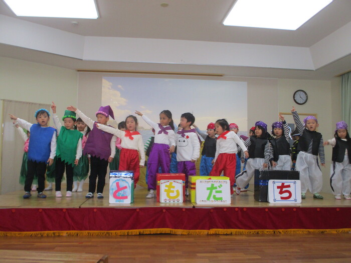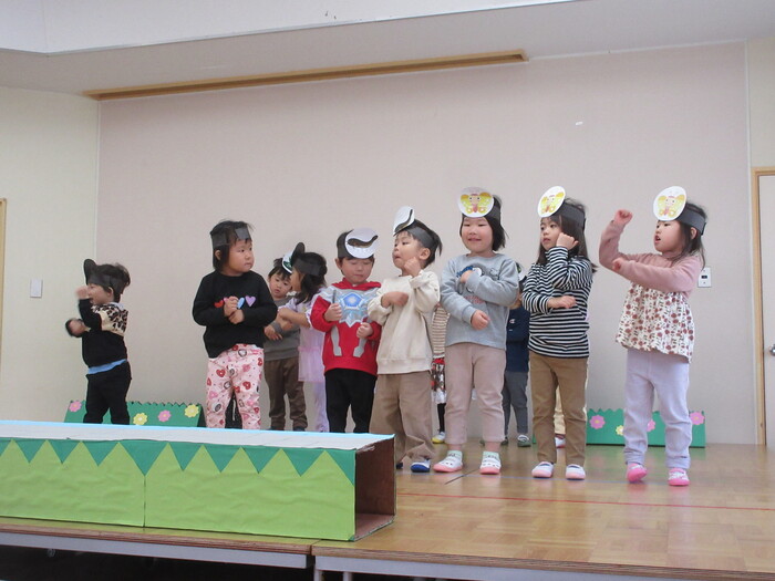 保育園最後の発表会。 みんなで気持ちを合わせ、一人ひとりが自分の役を演じきりました。 さすがぞう組さん!! 保育園での思い出がまたひとつ増えました😊 | ||
