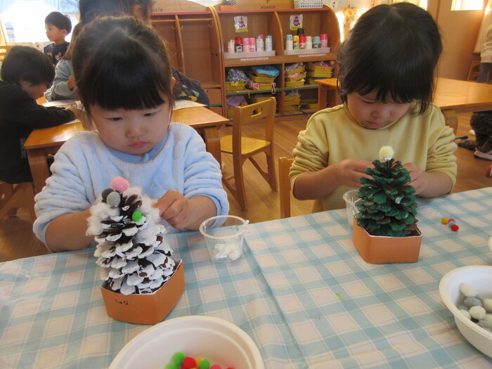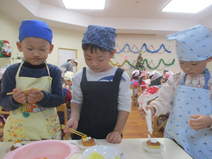 楽しみにしていたクリスマスの日🎄 みんなの願いが届いてサンタさんが来てくれました❕ おやつは、自分たちでデコレーションしたケーキを食べました。 とーっても楽しいクリスマスの1日でした✨ | ||