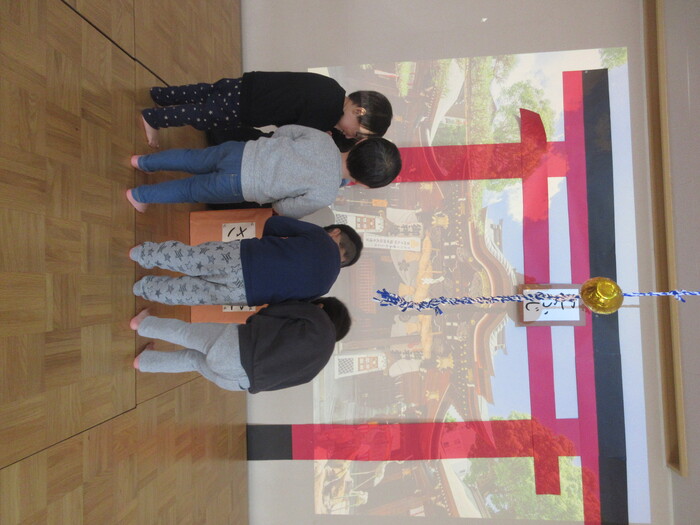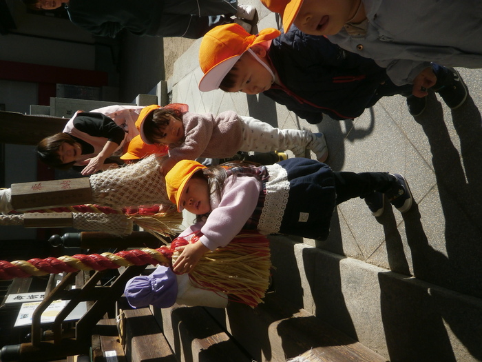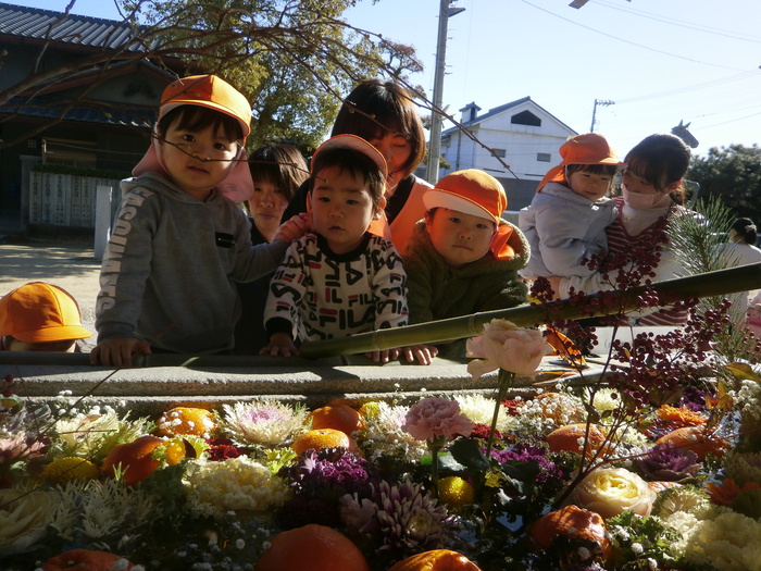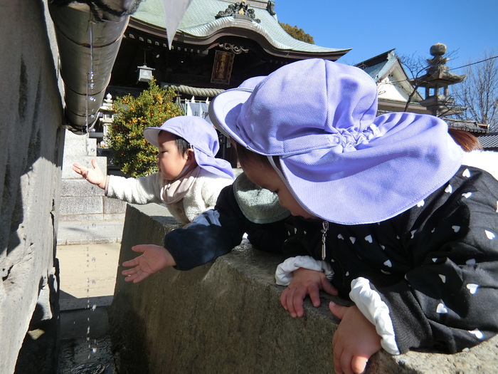 あひる組は近くの港まで。「おっきなふねー」とお友だちと盛り上がりました。 ひよこ・りす組は厳島神社へ初詣。 きれいな花手水🌺をみて、お参りもして、1年のスタートをきりました🐎 | ||