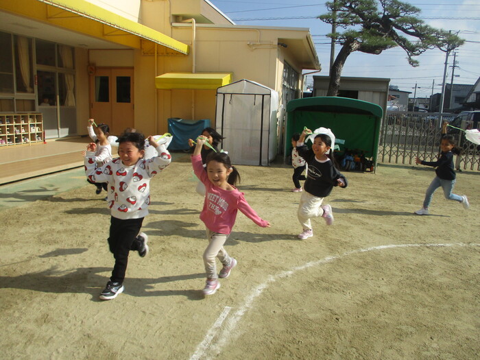 冷たい風が吹き、厳しい寒さがやってきましたが、子どもたちは元気いっぱい。 今月からはマラソンを始め、『さむーい』と言いながらも、みんな最後まで頑張って走っています。 これからまだまだ寒い日が続きますが、冬の季節を楽しみつつ元気に過ごしたいと思います。 日々の相談事、お困り事、苦情は園長もしくは保育園に何なりとご相談ください。 | ||