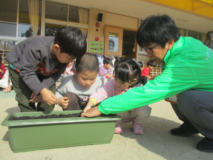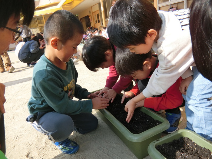 ぱんだ・きりん・ぞう組はどんぐりを植えました。 これからみんなで大切に育てます‼ | ||