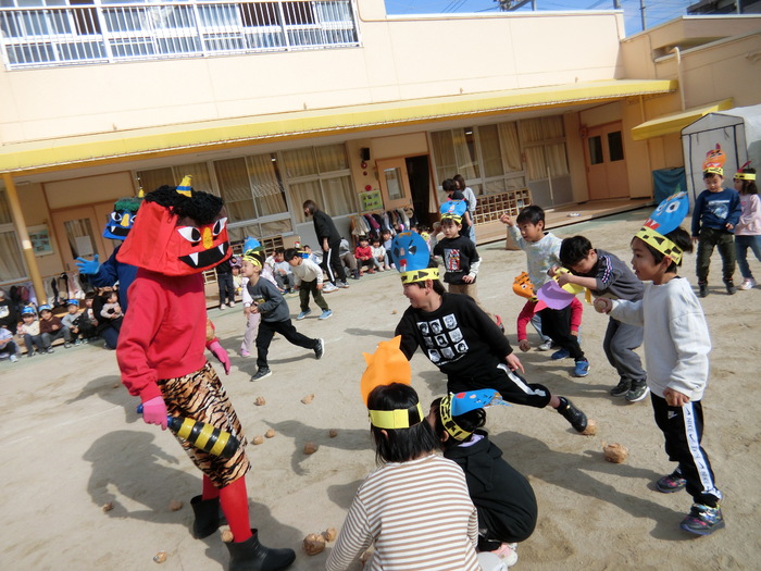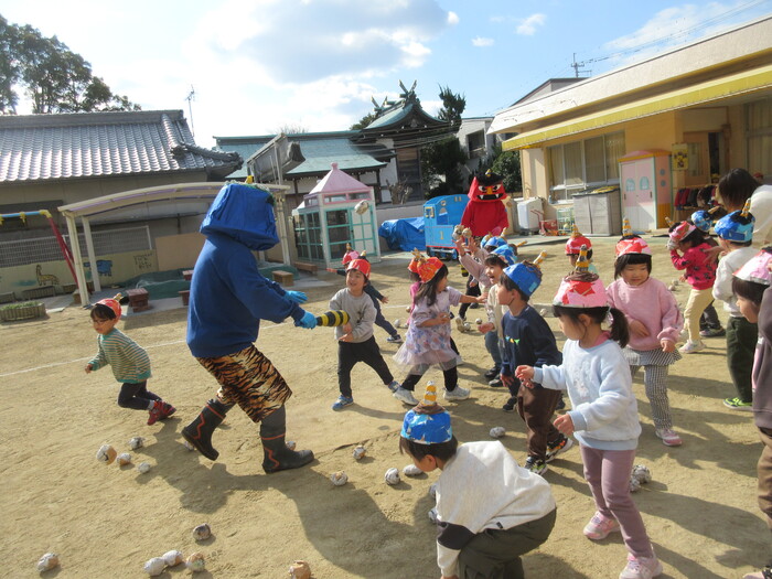 日に日に厳しい寒さも和らぎ、春の陽気を感じられるようになりました。 今月の『目玉😲』は節分集会‼ 子どもたちにとってはハラハラドキドキの一日でした💦 怖い鬼とともに自分の心にいる『鬼』と闘い、強くなりました。 その他にも人形劇を観たり、マラソン大会をしたりと盛りだくさんの2月。 元気いっぱいの子どもたちの様子をお伝えします。 日々の相談事、お困り事、苦情は園長もしくは保育園に何なりとご相談ください。 | ||