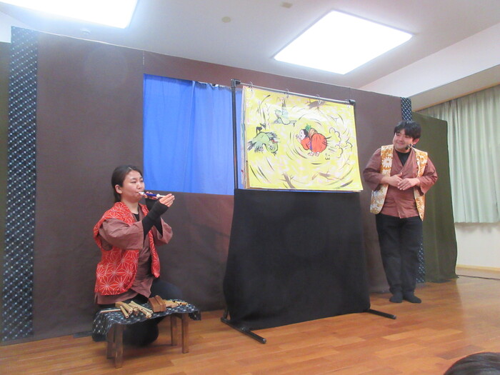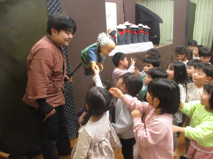 劇団『すぎのこ』の人形劇を観ました。 本格的な人形劇に子どもたちは釘づけ☆ お話の世界に入り込んでいました。 お話は 紙芝居『ぶうう~ほわ~ん』 人形劇『かさじぞう』 来年のお話も楽しみです😍 | ||