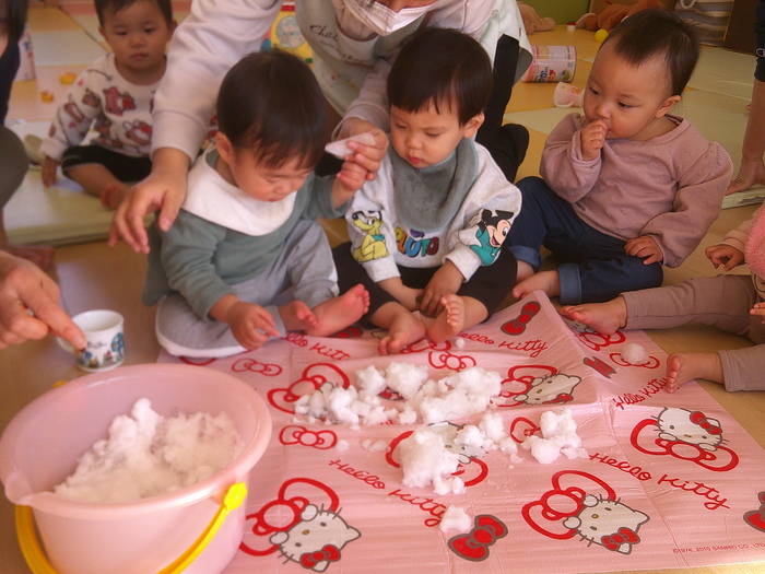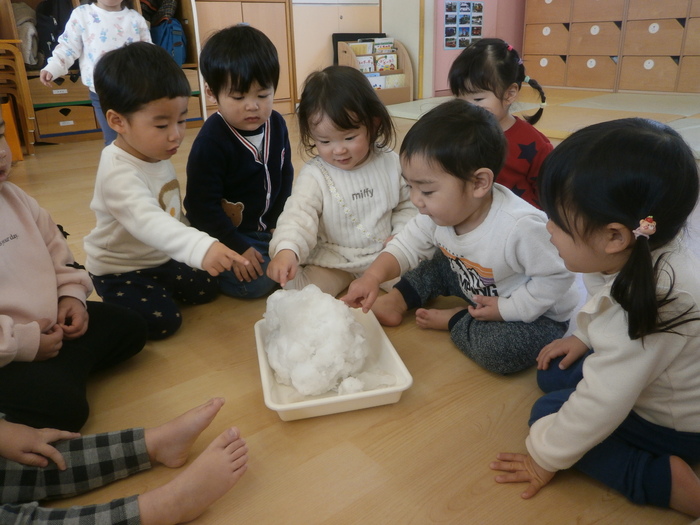 とっても寒くて雪の積もった日⛄ 興味津々でさわってみました。 「これなんだ⁇」のこどもたち😆 松山ではめずらしい貴重な経験です✨ | ||