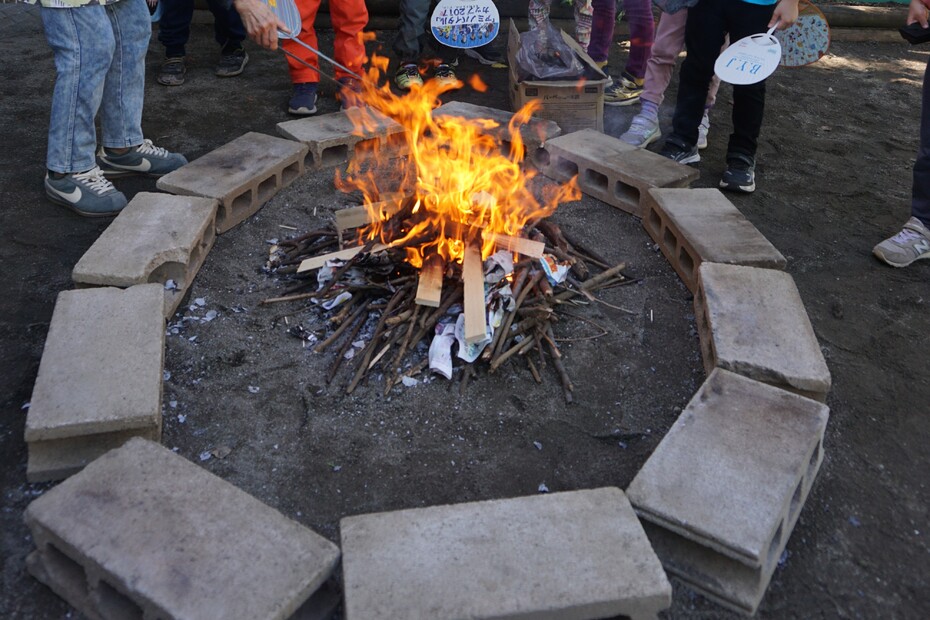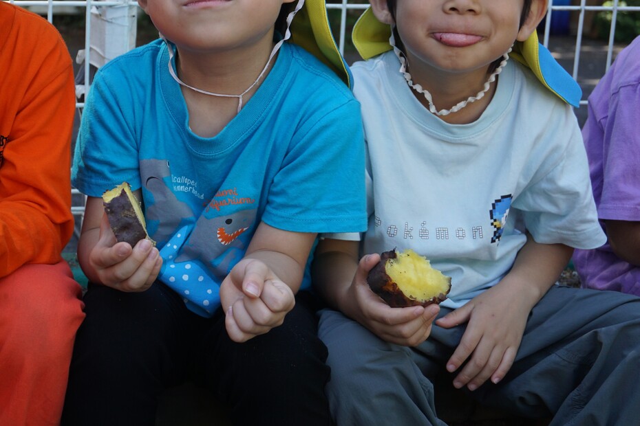 かまどを作り年長児が芋を焼き、他の園児や近所の方々へ配り、秋の風物詩である焼き芋を楽しみました!ほくほくで美味しかったです!