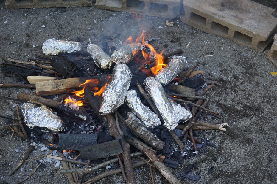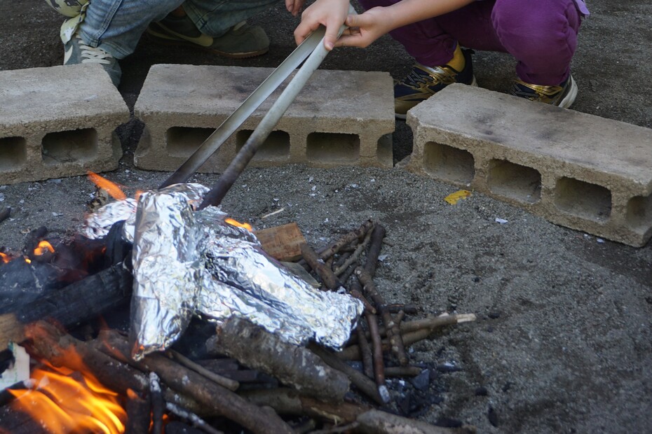 後日、掘った芋を使い前庭で焼き芋をしました。