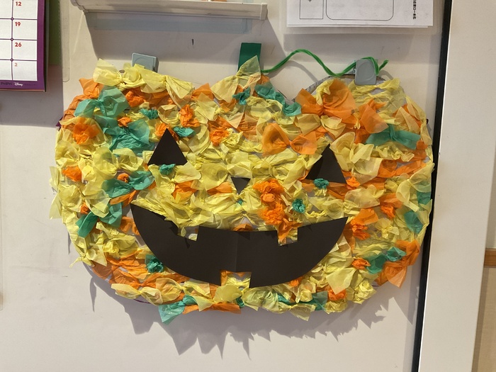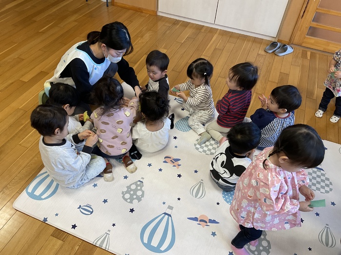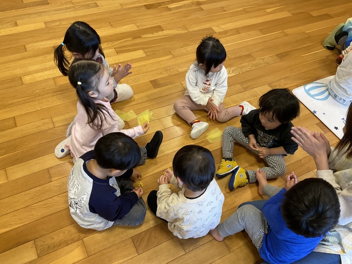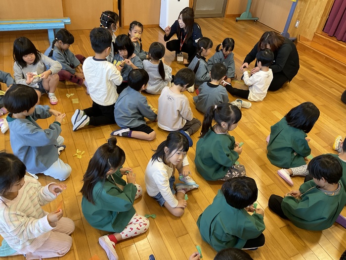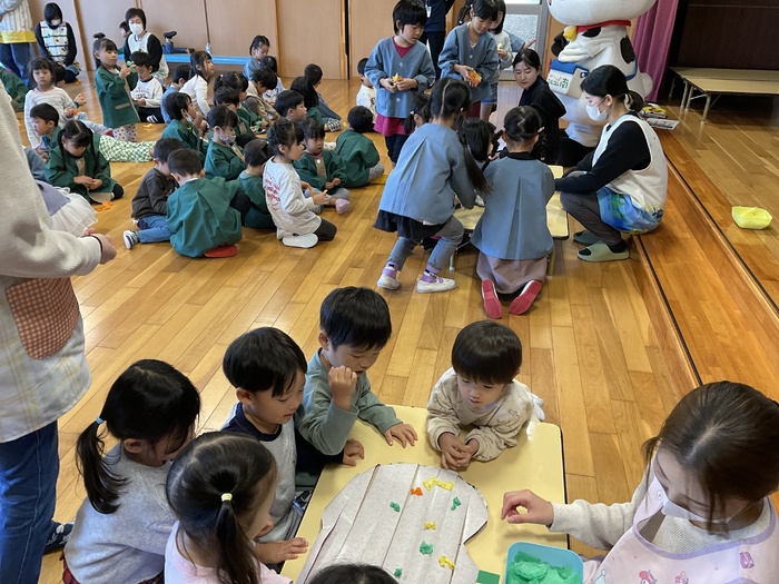 誕生会 10月生まれのお友だちの誕生会でした! ミルコムのお姉さんとみるぽんも 一緒にお祝いをしてくれました♪ 誕生児の紹介をしたあと みんなでハロウィンのカボチャ作り☺ 花紙を丸めたり リボンの形にねじったりして 飾り付けをして かわいいカボチャが完成しました☆ 10月生まれのお友だち おたんじょうびおめでとう♡ | ||