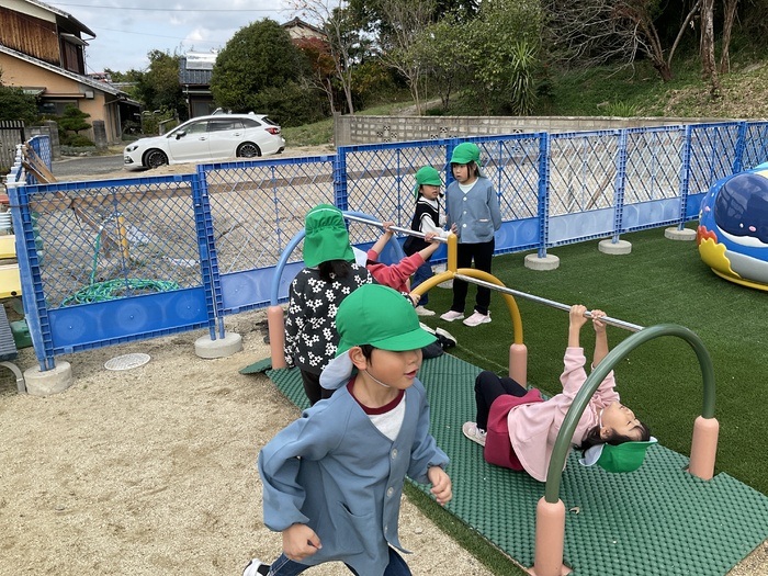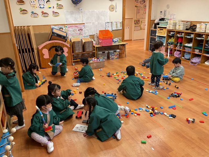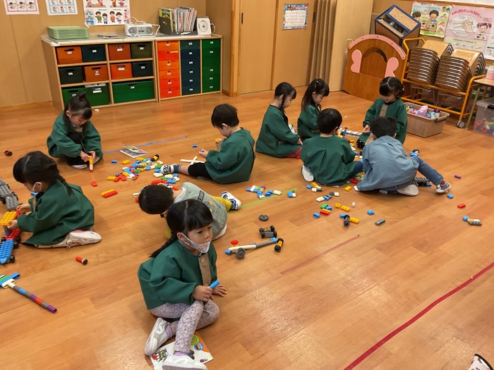 青組(3歳児)さん 初めてのポリエムブロック!! 自分たちで組み立ての説明書を選び それを見ながら協力して完成させて 大盛り上がりでした! 園庭では雲梯に興味をもち 挑戦する子が増えてきました。 最初は「こわーい!難しい~」 と言っていた子たちも 少しずつできるようになり がんばる姿がたくましいです☆ 絵本読みでは読めるひらがなも増えてきて 成長を感じます☺♡ | ||