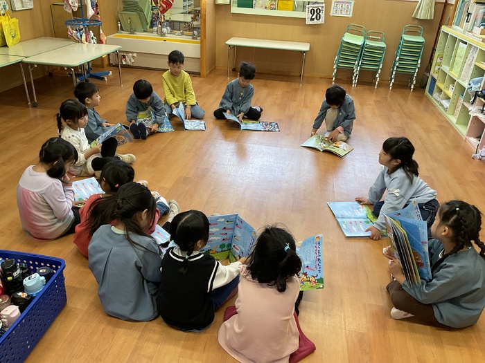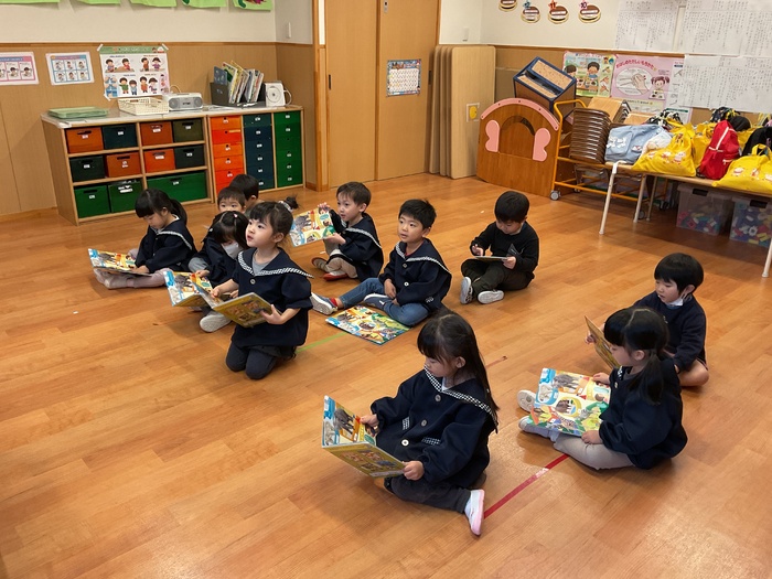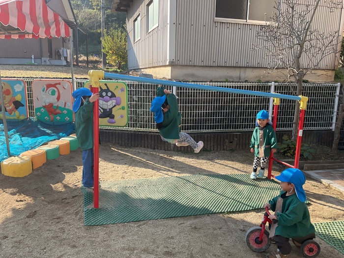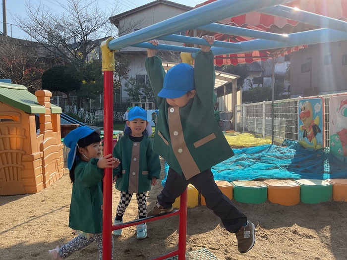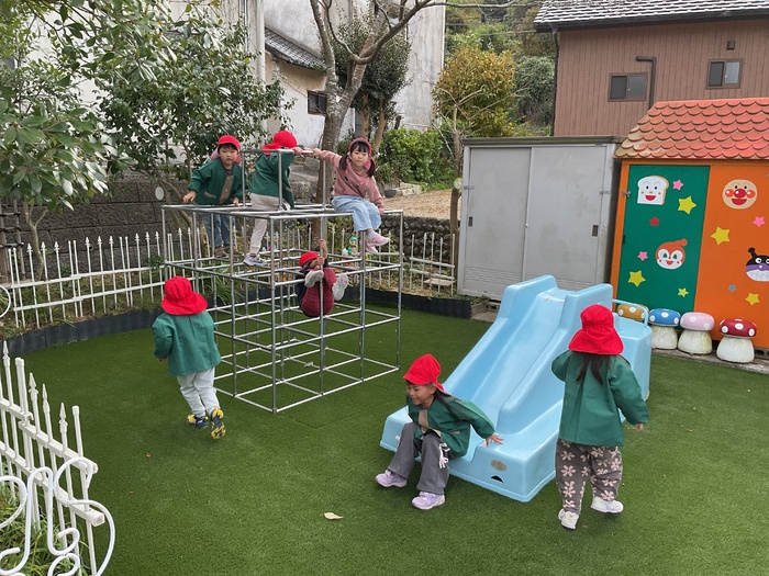 赤組(4歳児)さん 園庭遊びや室内遊びで 元気いっぱい遊んで過ごしました! おゆうぎかいの劇や踊りの練習も盛り上がり みんなとってもがんばっています。 もうすぐおゆうぎかい☺ 楽しみだね! 12月もいっぱい遊んで 元気に過ごしたいと思います。 | ||