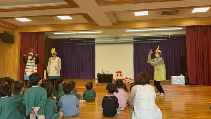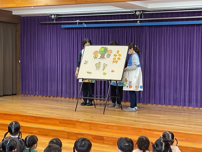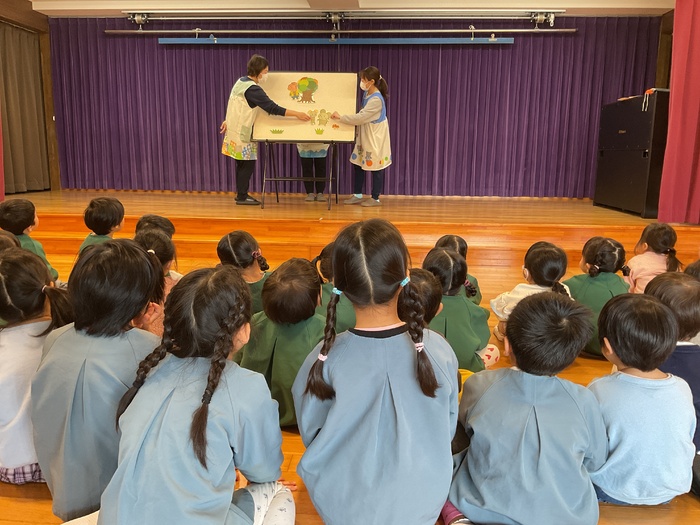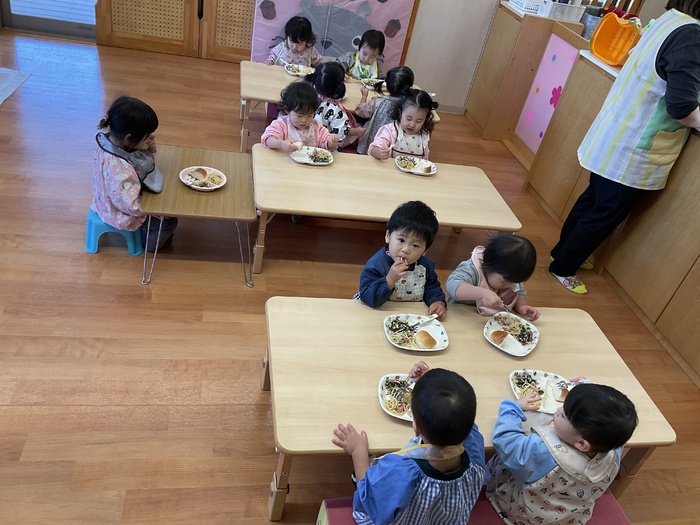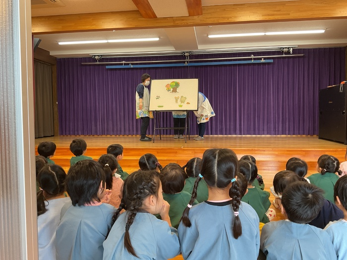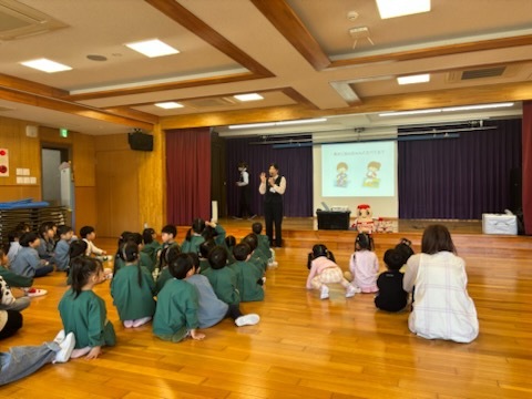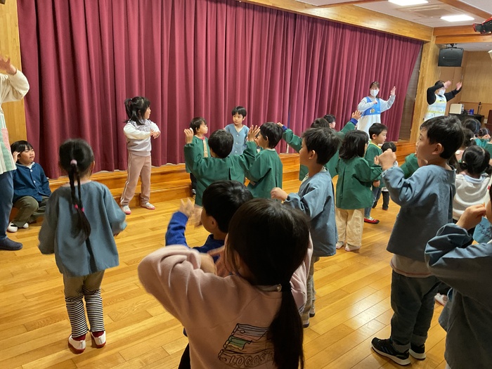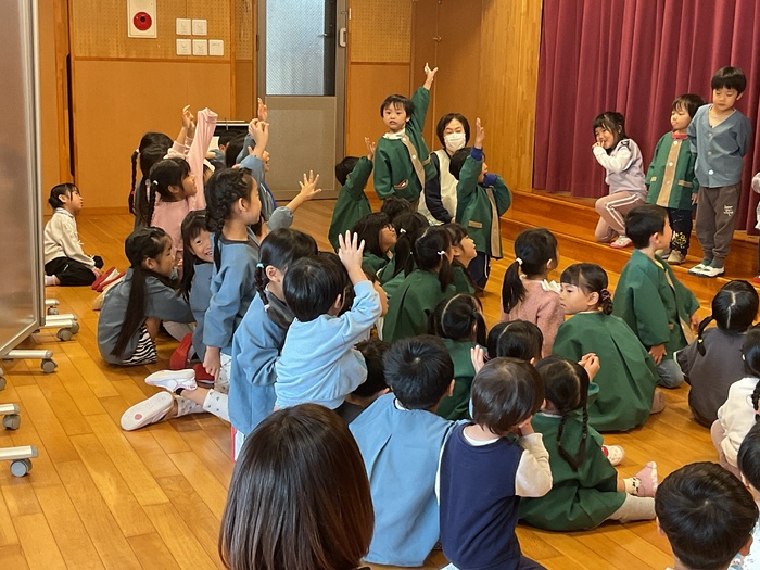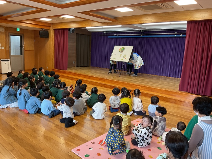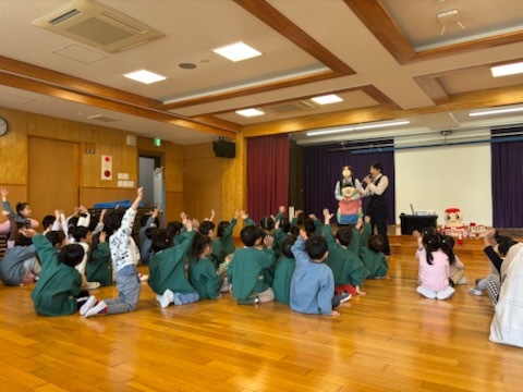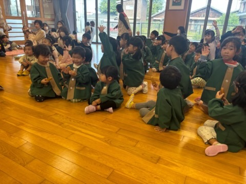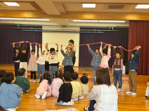 誕生会 11月生まれのお友だちの誕生会でした! 誕生児のお友だちが 動物の鳴き声に挑戦!! “誰が言ってるか 当ててみようクイズ”を 楽しみました。 登場してくる11月生まれのお友だちを みんなでお祝いしました☺ ハッピージャムジャムの踊りも楽しかったね! パネルシアターでは 「ねずみのすもう」を見ました。 みんな楽しそうに見ていて 盛り上がっていました♪ 11月生まれのお友だち おたんじょうびおめでとう♡ | ||