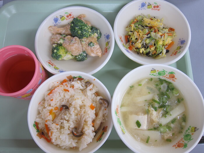 しめじごはん とりマヨ 小魚サラダ みそ汁 おいしかったね! ごちそうさまでした‼ | ||