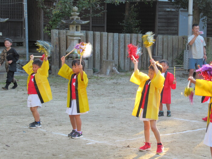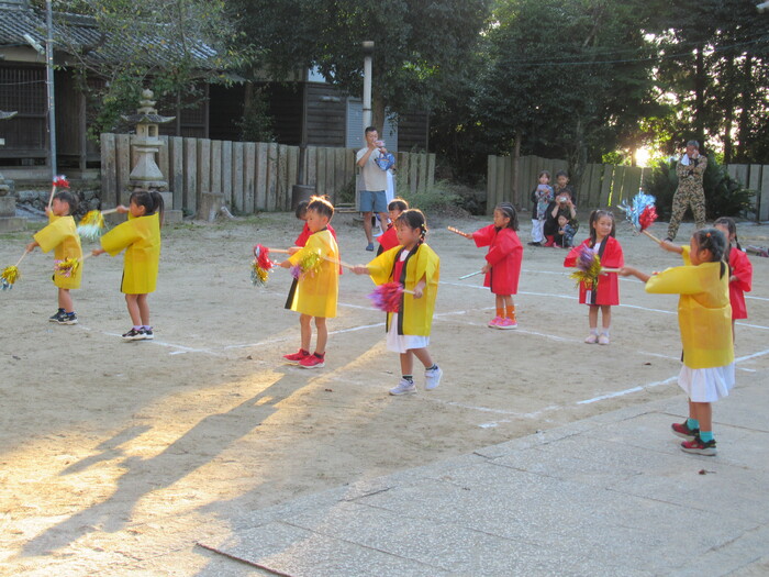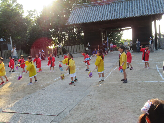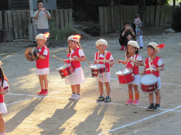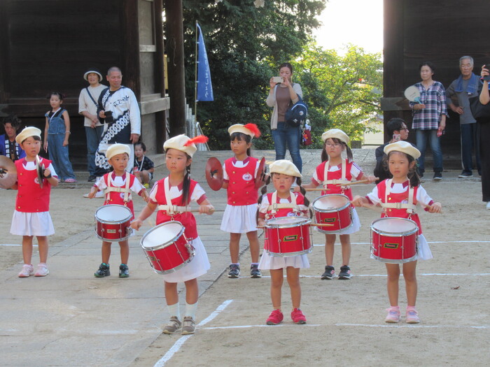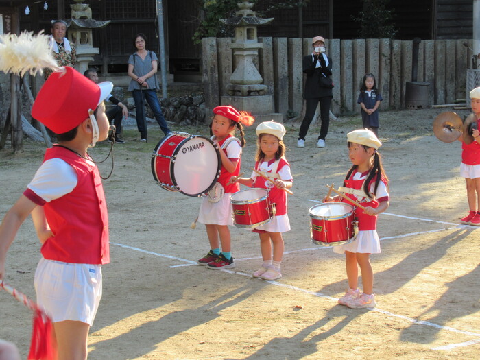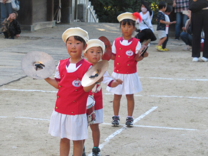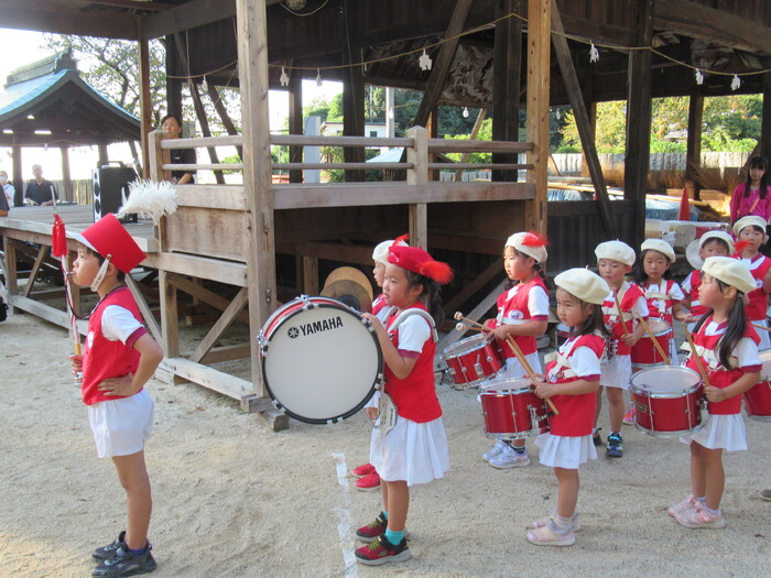北条秋まつりがあり10/12日(日)にそら・にじ組が高縄神社で鼓隊パレードを披露しました。 友だち同士で元気に走り回っていた子どもたちですが本番が近づくとちょっぴり緊張している様子でした(笑) しかし、始まると最後まで楽しく披露することが出来ました★ 暑い中でしたがご参加いただきありがとうございました。 次は運動会本番での披露となります!お楽しみにしていてください♪ | ||