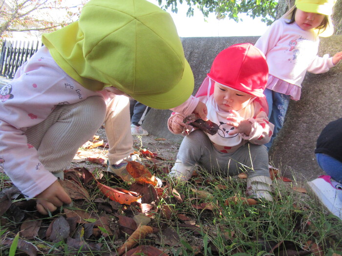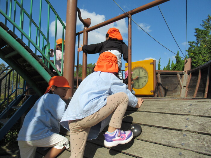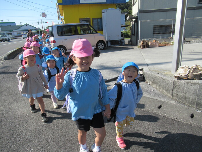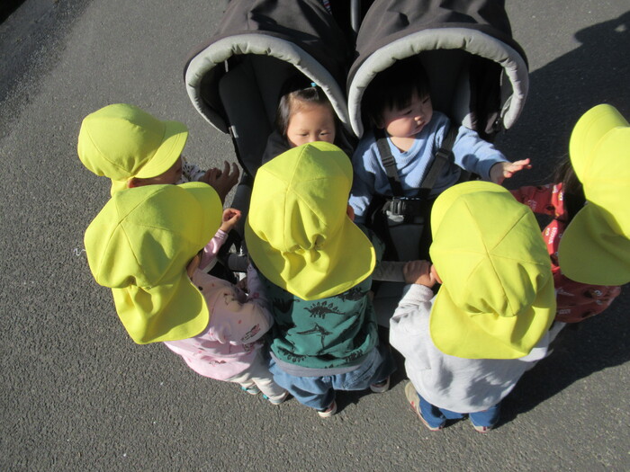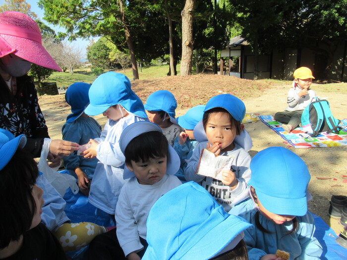 園外保育で未満児は園周辺をお散歩、以上児は文化の森公園に