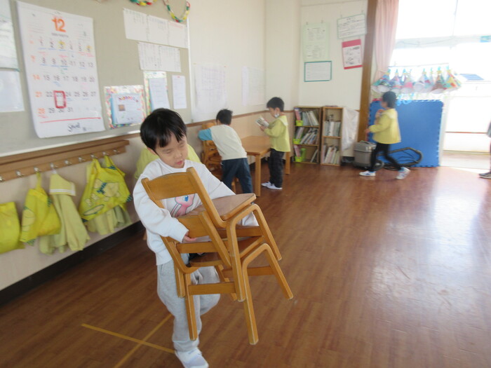 今年もあっという間に一年が経とうとしています。 年末ということもあり、みんなで大掃除をしました。 絵本や本棚、ロッカー、机、床、窓を隅々までキレイにして気分もスッキリ✨ 新年を気持ち良く迎えられます! みなさま、良いお年をお迎え下さい°˖✧◝(⁰▿⁰)◜✧˖° | ||